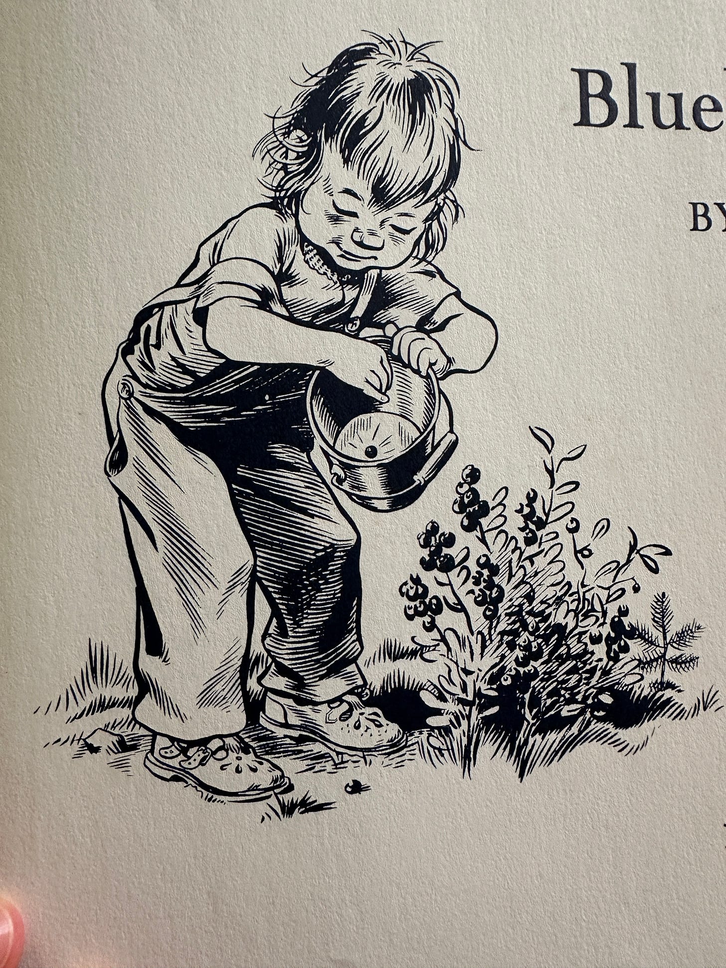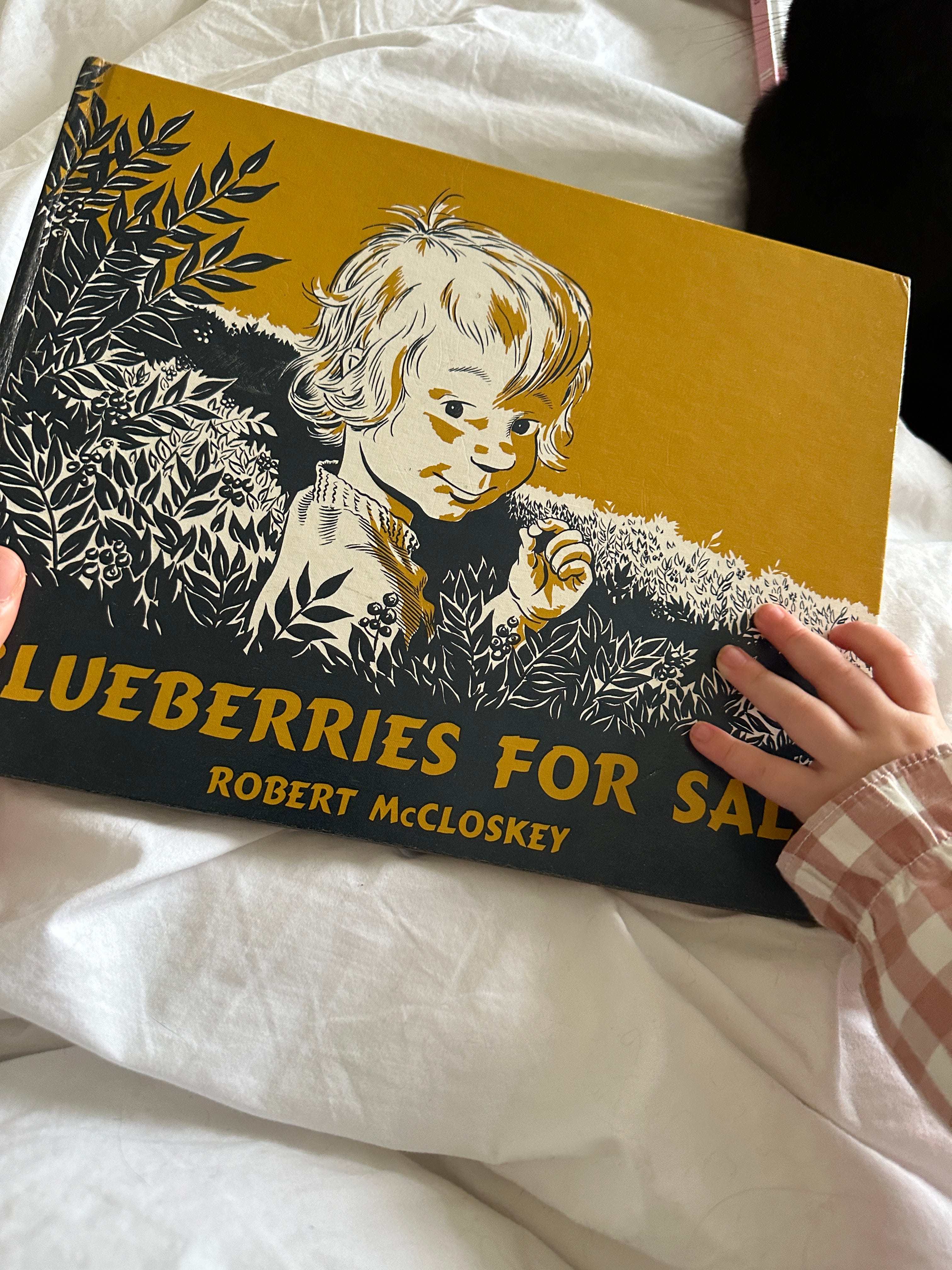 Our copy of Blueberries for Sal was gifted to Lilyan by my dear friend (and favorite performance artist) Madeleine Von Fromer.