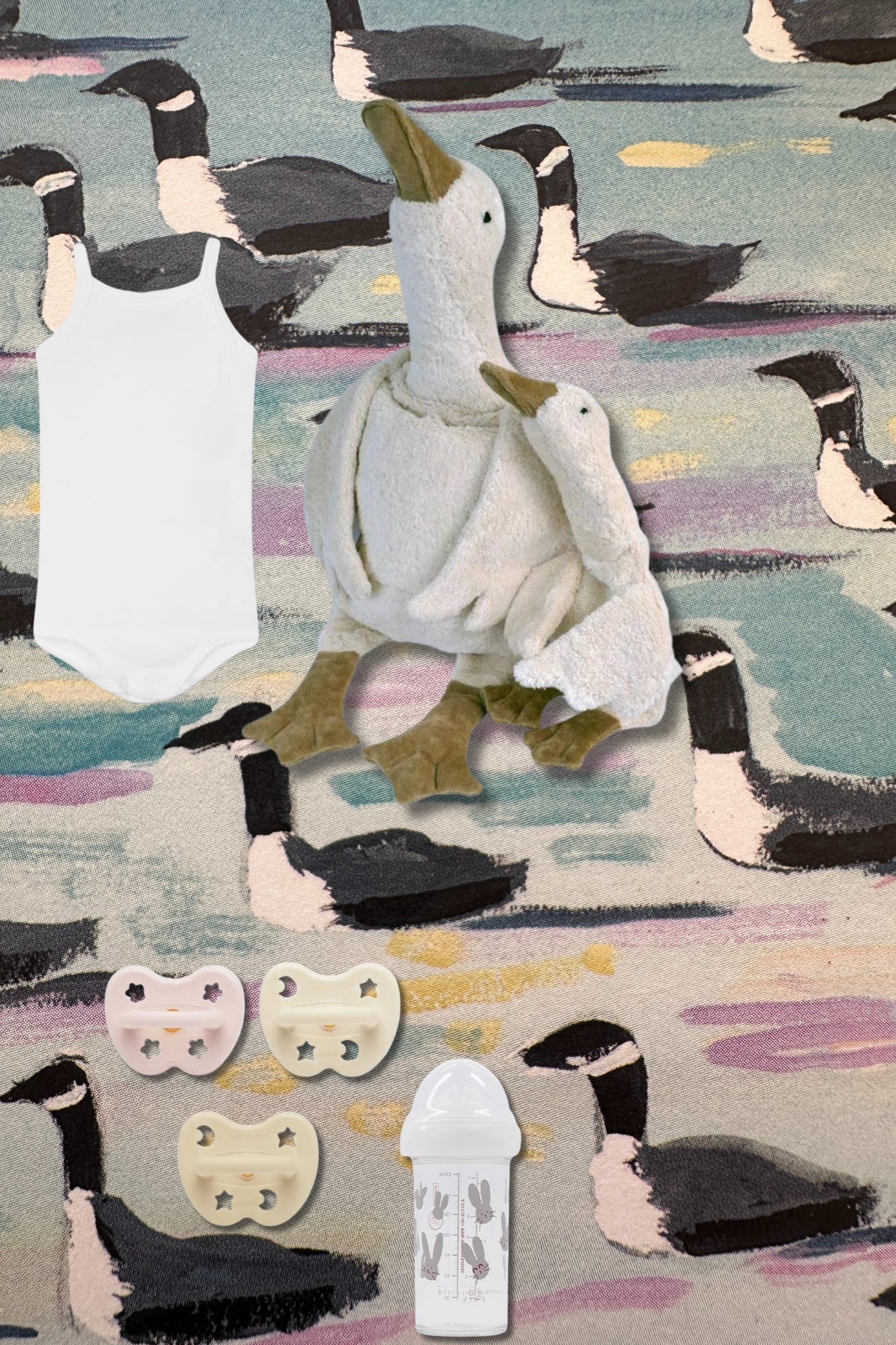 Stella McCartney Bottle, Senger Pillow, Hevea Pacifiers, Kyte Sleep Bag, Petit Bateau Onesies, Coterie Diapers and Wipes