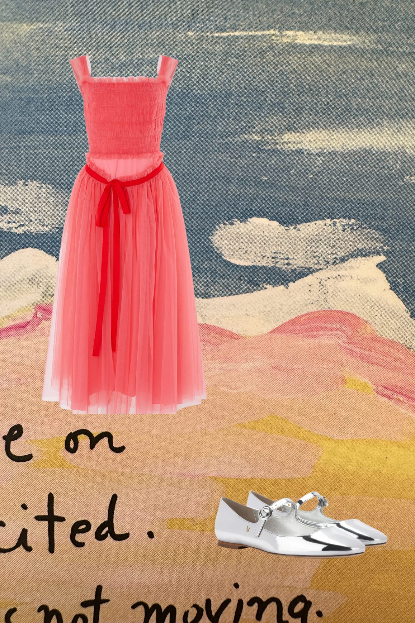 Molly Goddard Dress, Larroude Ballet Flat , Betsey Johnson cardigan