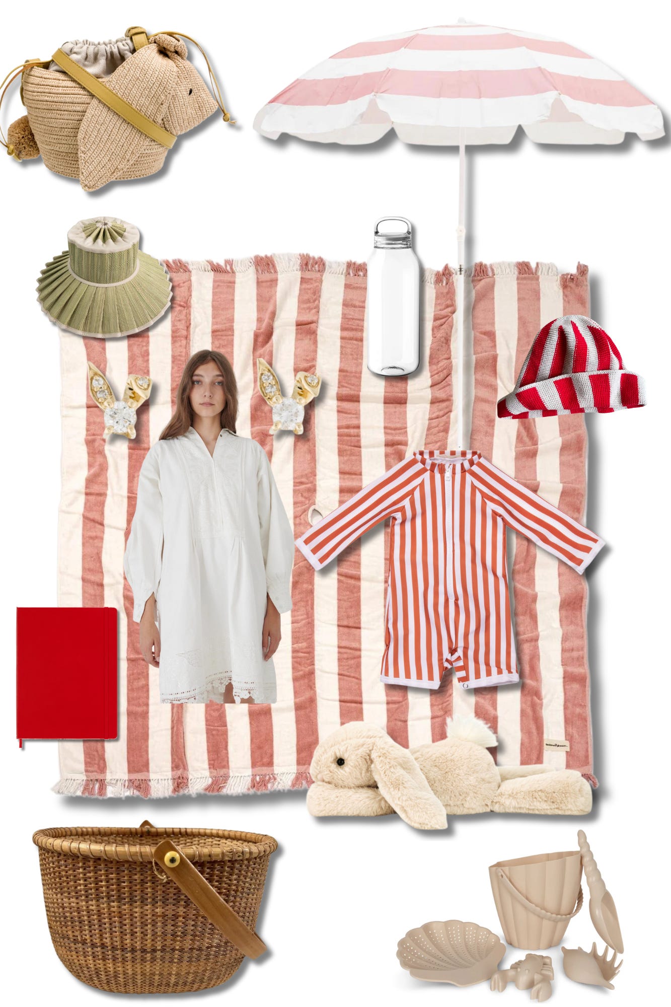 Moleskine Notebook, Jellycat Rabbit, Vintage Basket, Konges Slojd Beach Set , Havaianas Flip Flops