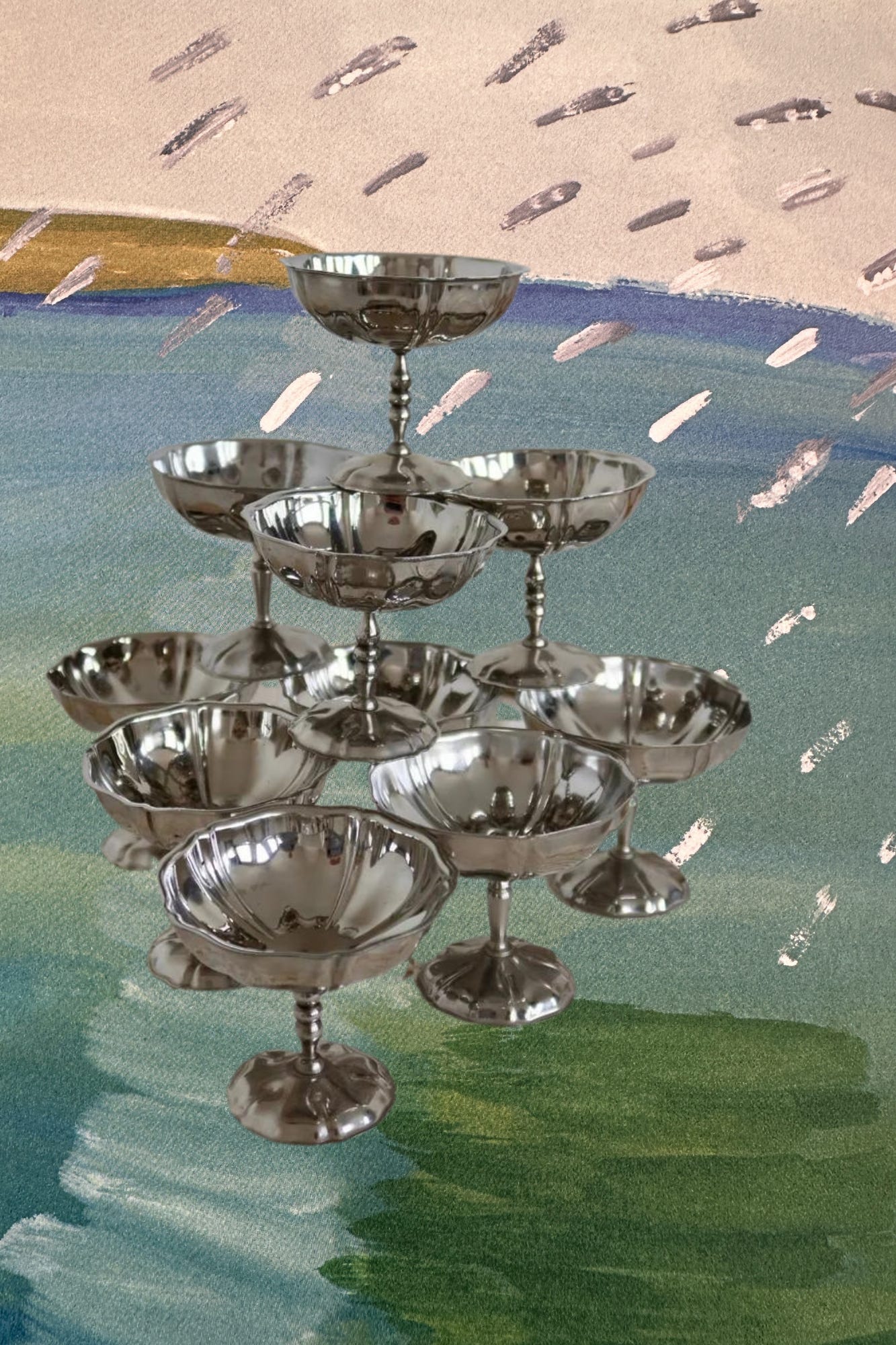 Serve to your naked baby (this will stain), your mother, all her friends, and yourself in your cheeriest glasses from a now shuttered ice cream parlor in Paris.